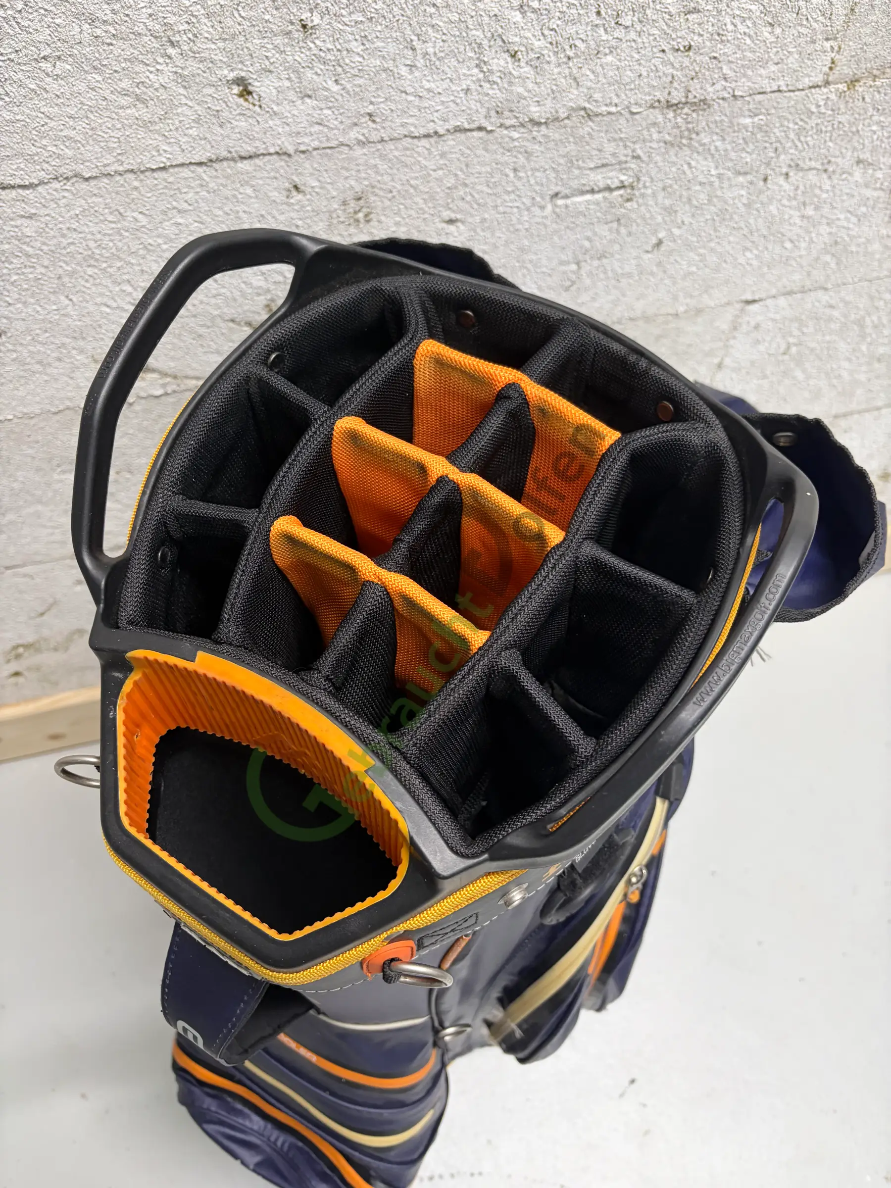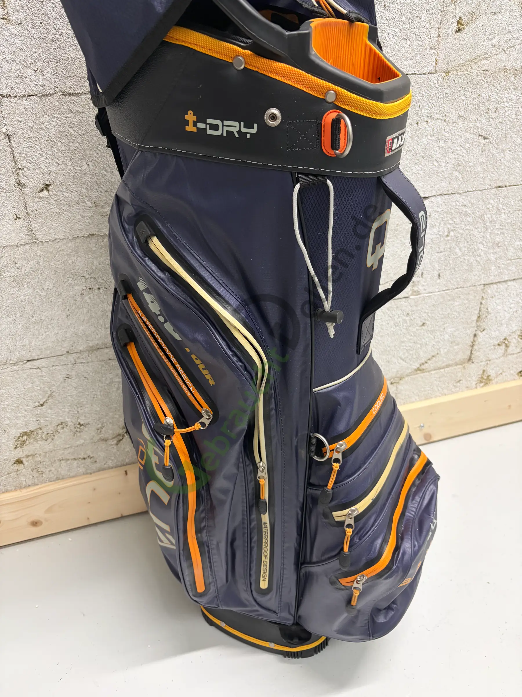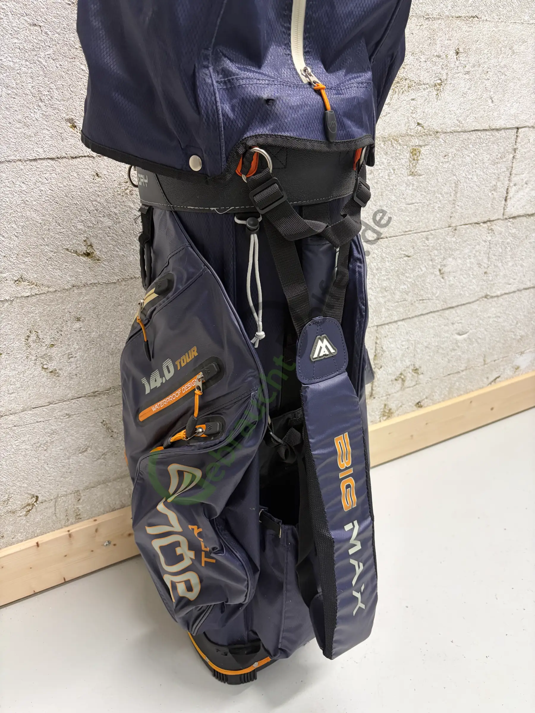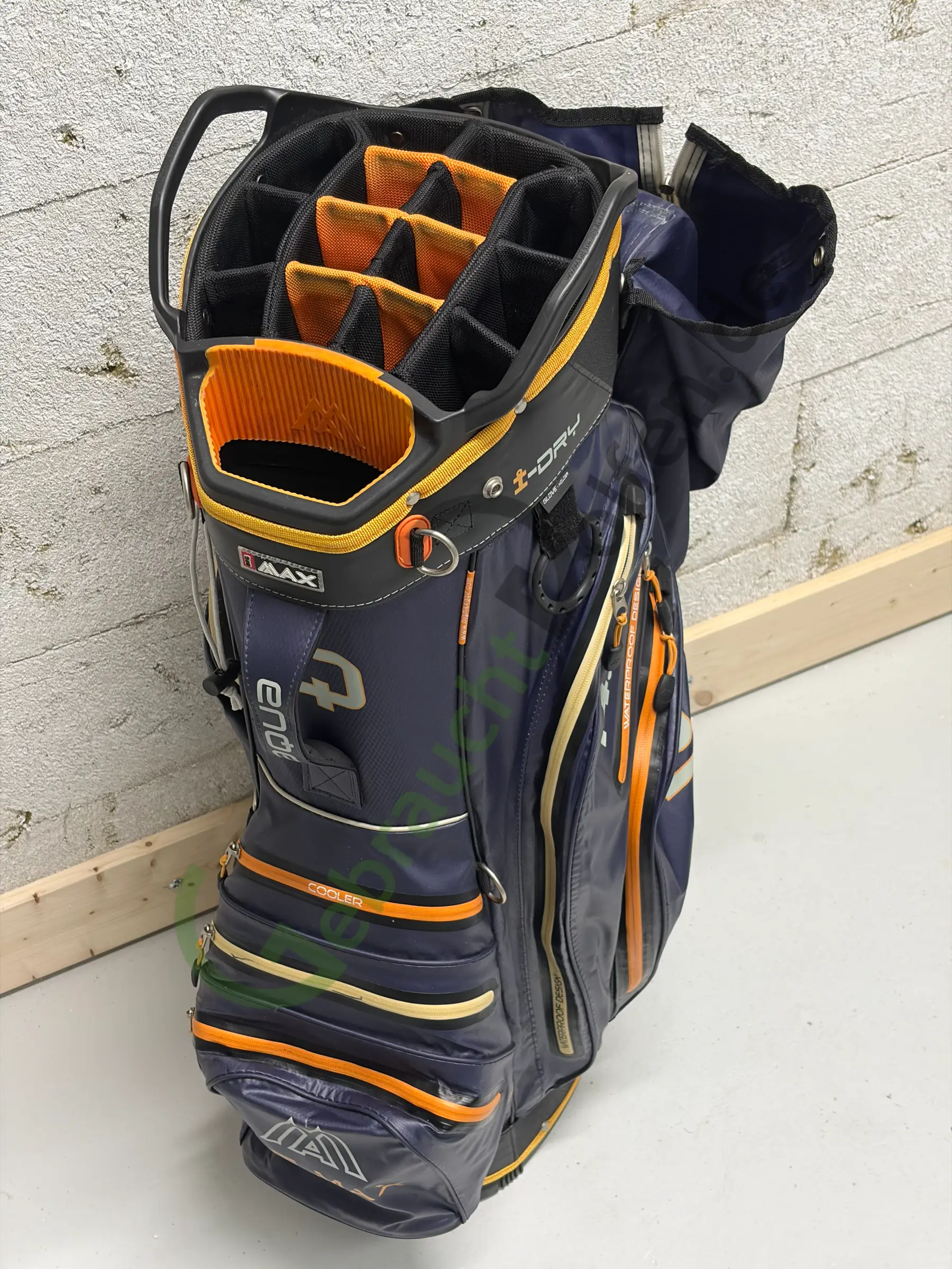 Gebrauchtes Cartbag von BIG Max aus der Aqua Tour 3-Serie mit 14 durchgehenden Schlägerfächern und 9 Seitenfächern, inkl. Iso-, Batterie- und Wertsachenfach. Abnutzungsspuren bitte den Fotos entnehmen. Alle Reißverschlüsse funktionieren.