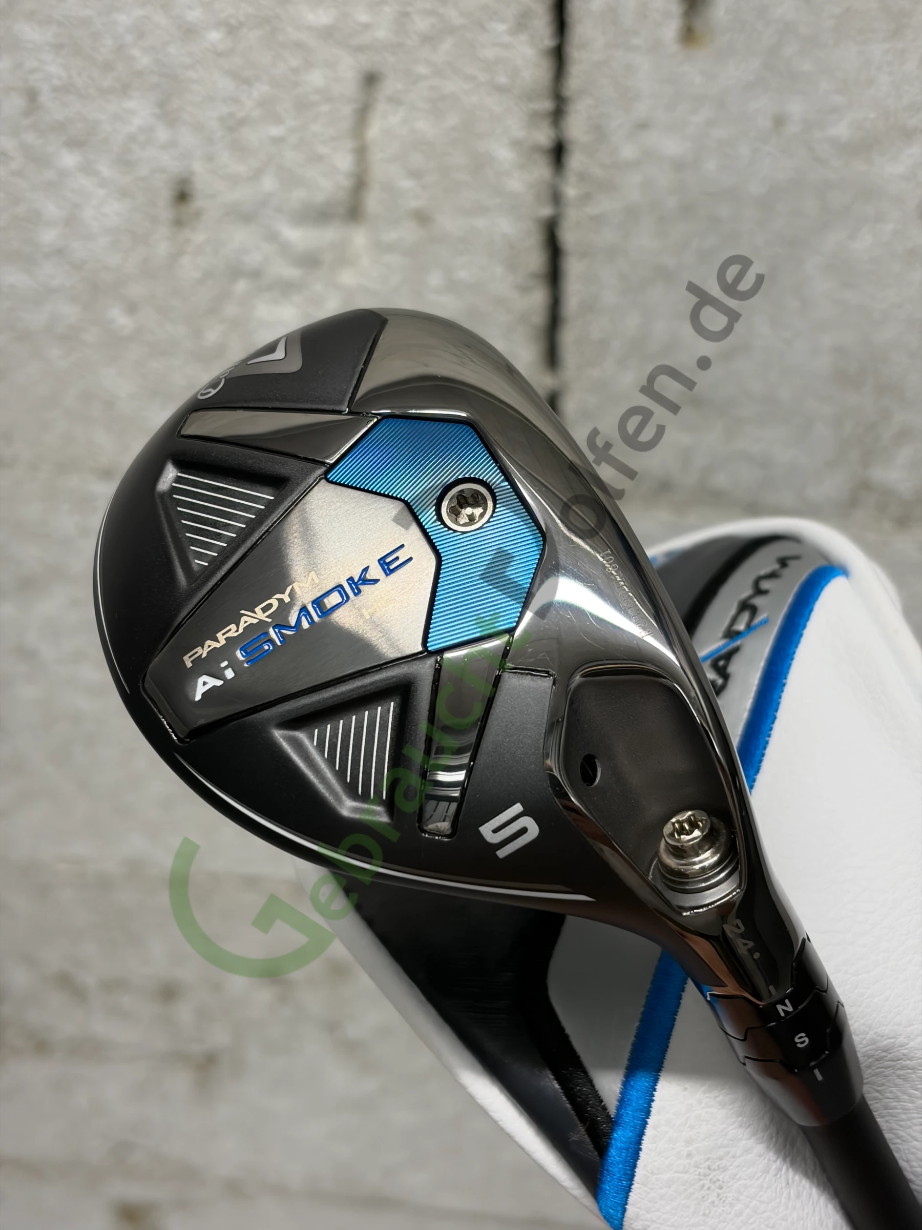 Gebrauchter Hybrid von Callaway aus der Paradym Ai Smoke-Serie mit verstellbaren 26 Grad Loft und Graphitschaft in Regular-Flex für Rechtshänder.