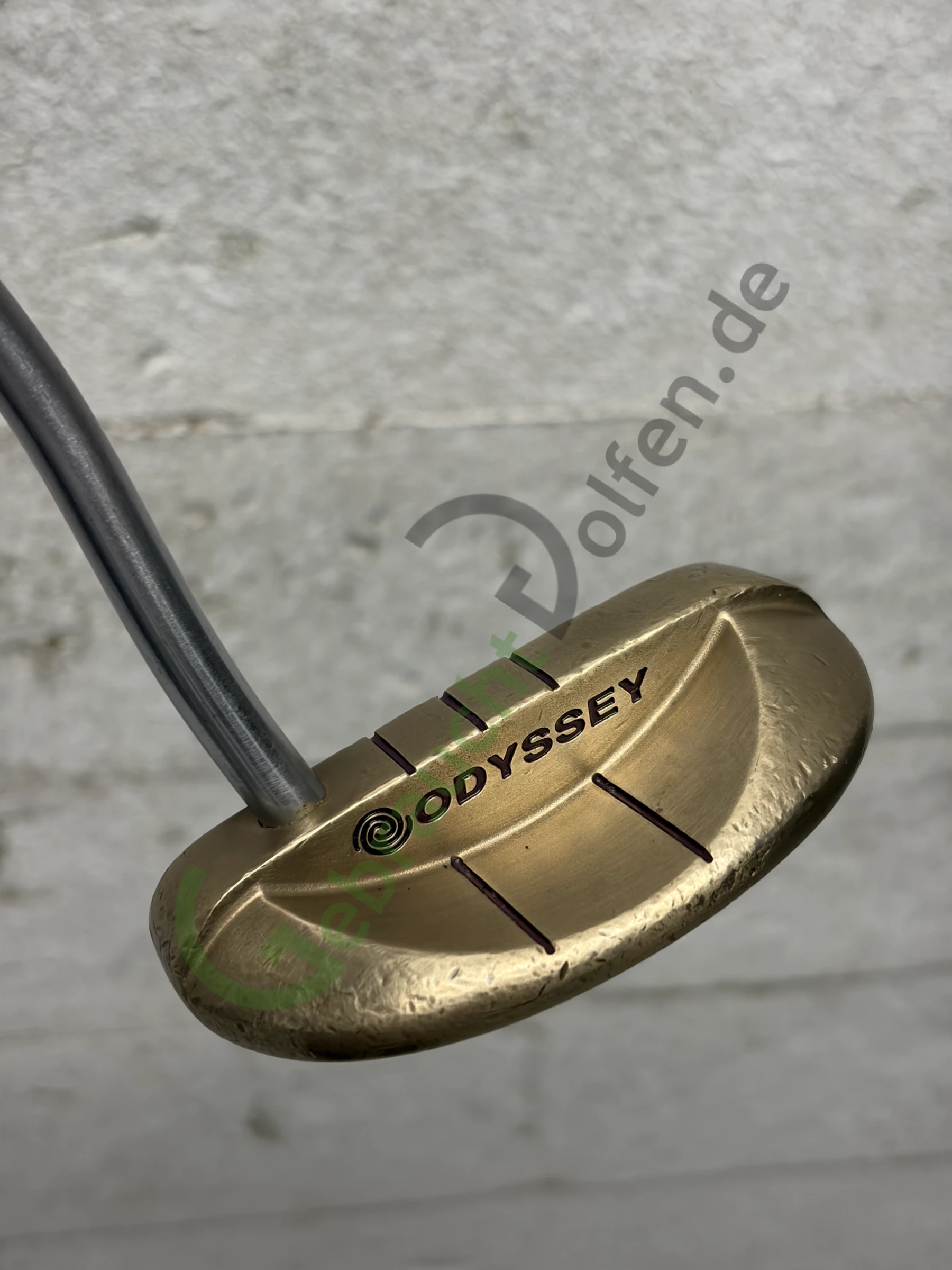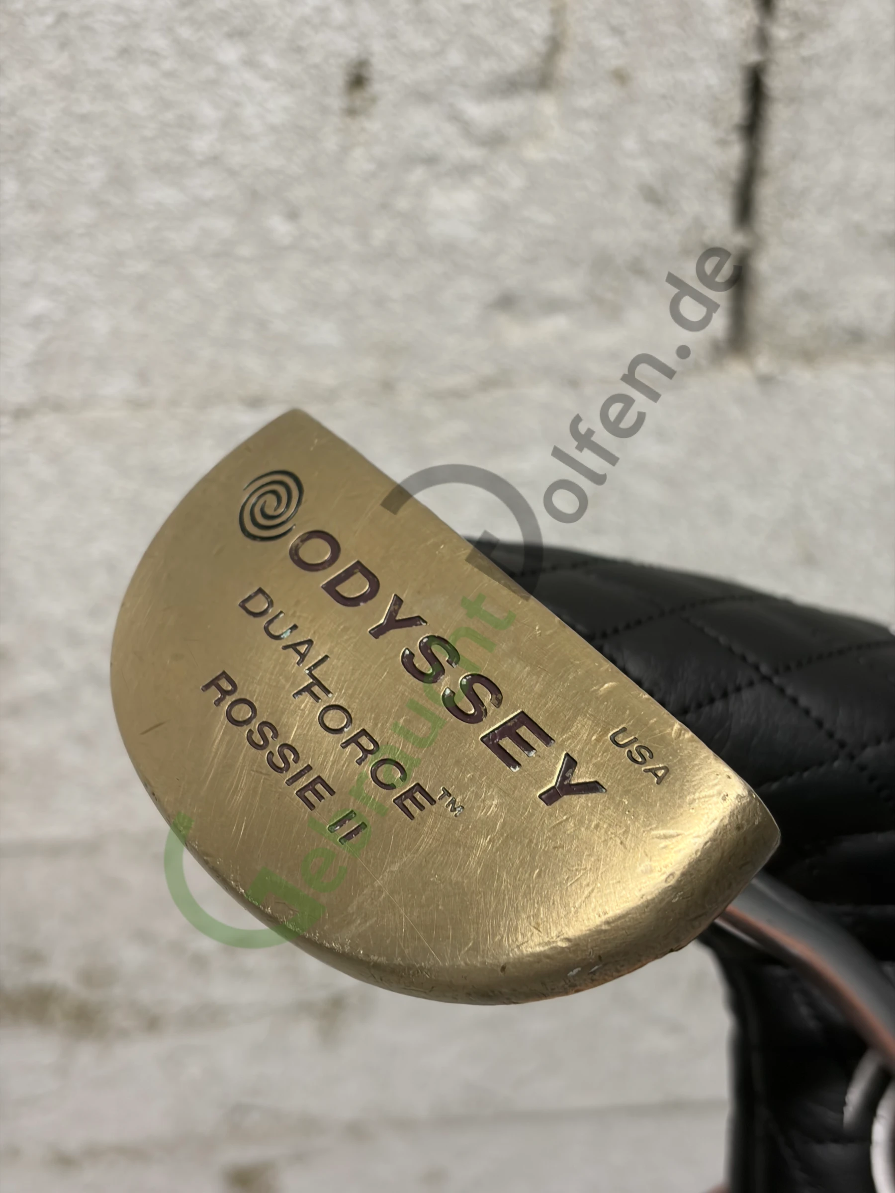 Gebrauchter Putter in Mid-Malletform von Odyssey aus der Dual Force Rossie II-Serie mit Stahlschaft in 33 inch bzw. 83,8 cm Länge für Rechtshänderinnen und -händer.