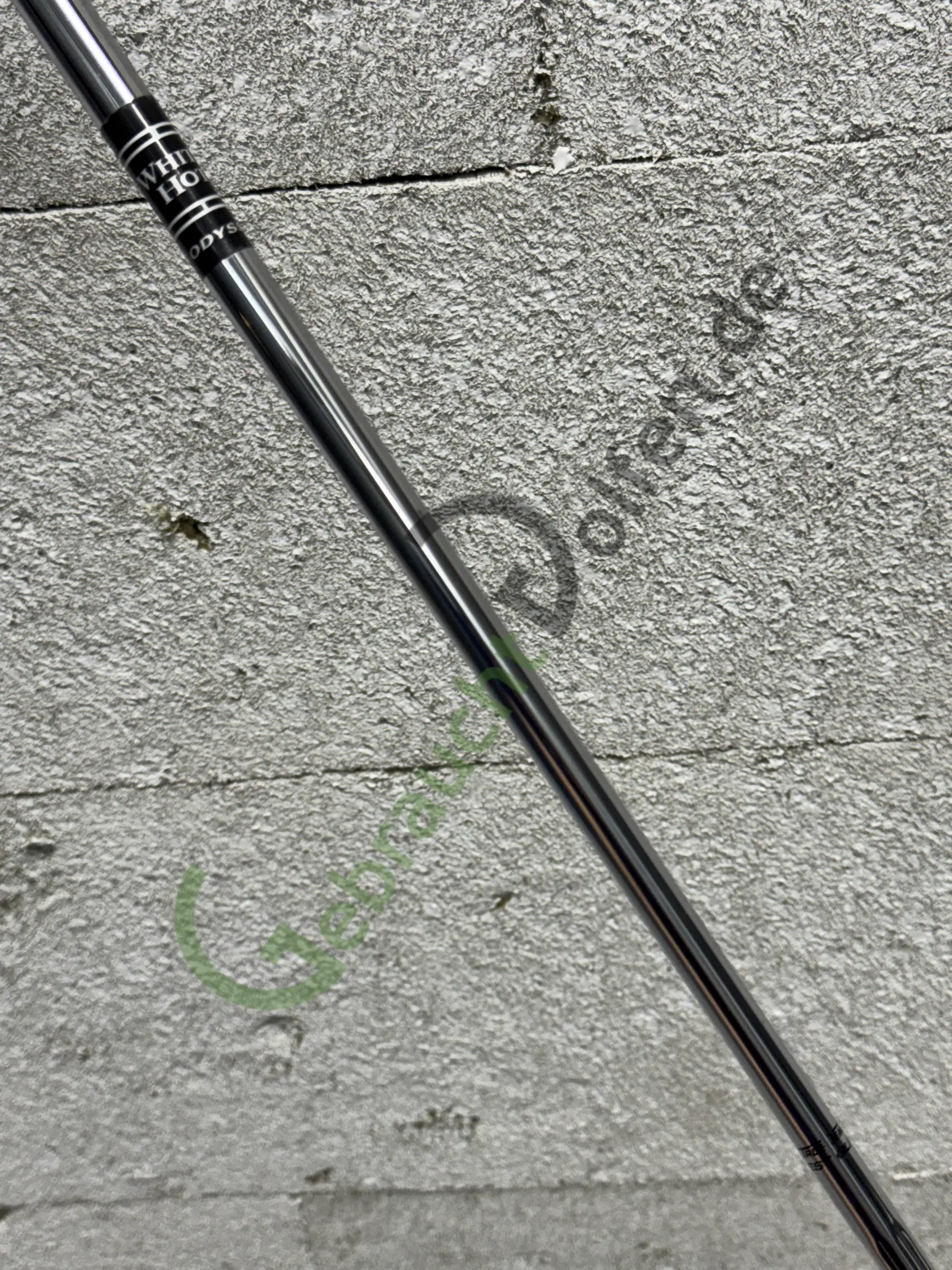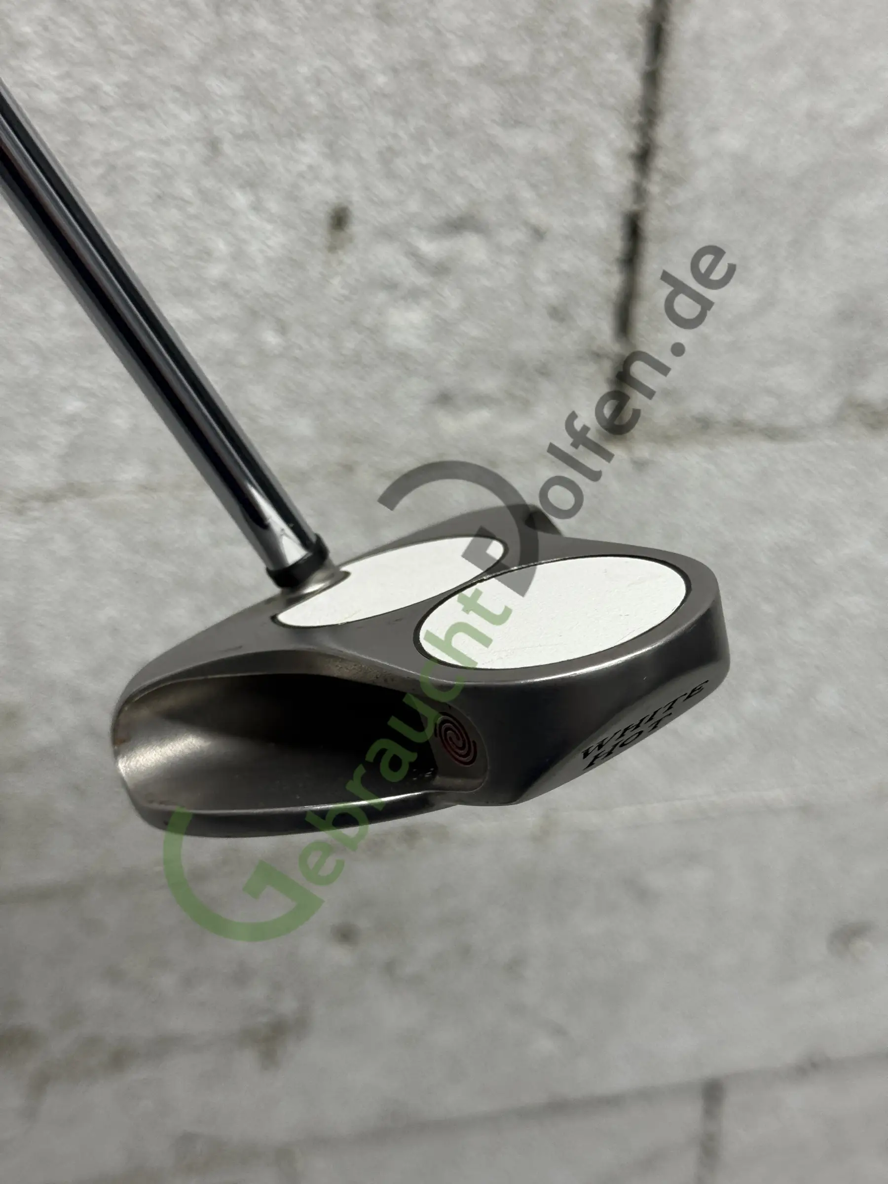 Ein gebrauchter Putter von Odyssey aus der White Hot 2-ball-Serie in Mallet-Form mit Stahlschaft in 34 inch bzw. 86,8 cm Länge für Rechtshänderinnen und -händer.