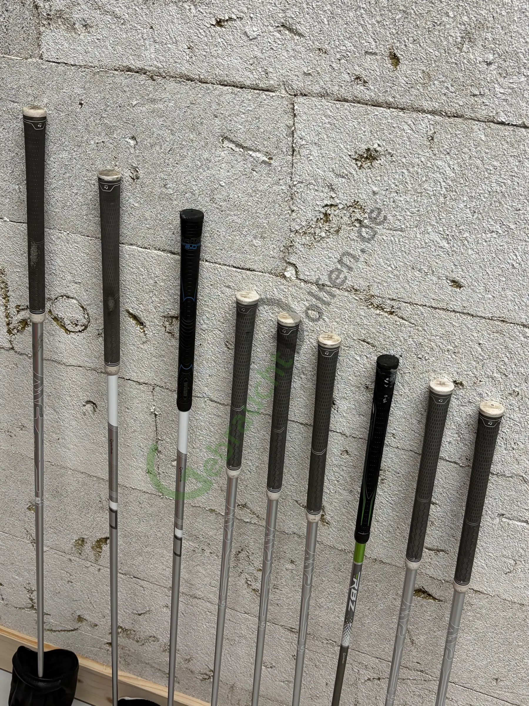 Gebrauchtes Komplettset von TalyorMade aus der M2 und der M4-Serie von Driver bis Putter in einem Cartbag für Rechtshänderinnen. Hinweise: Das Eisen 8 ist aus der TaylorMade RBZ-Serie mit den identischen Eigenschaften. Der Zustand vom Putter ist abweichend mit „in Ordnung“ anzugeben.