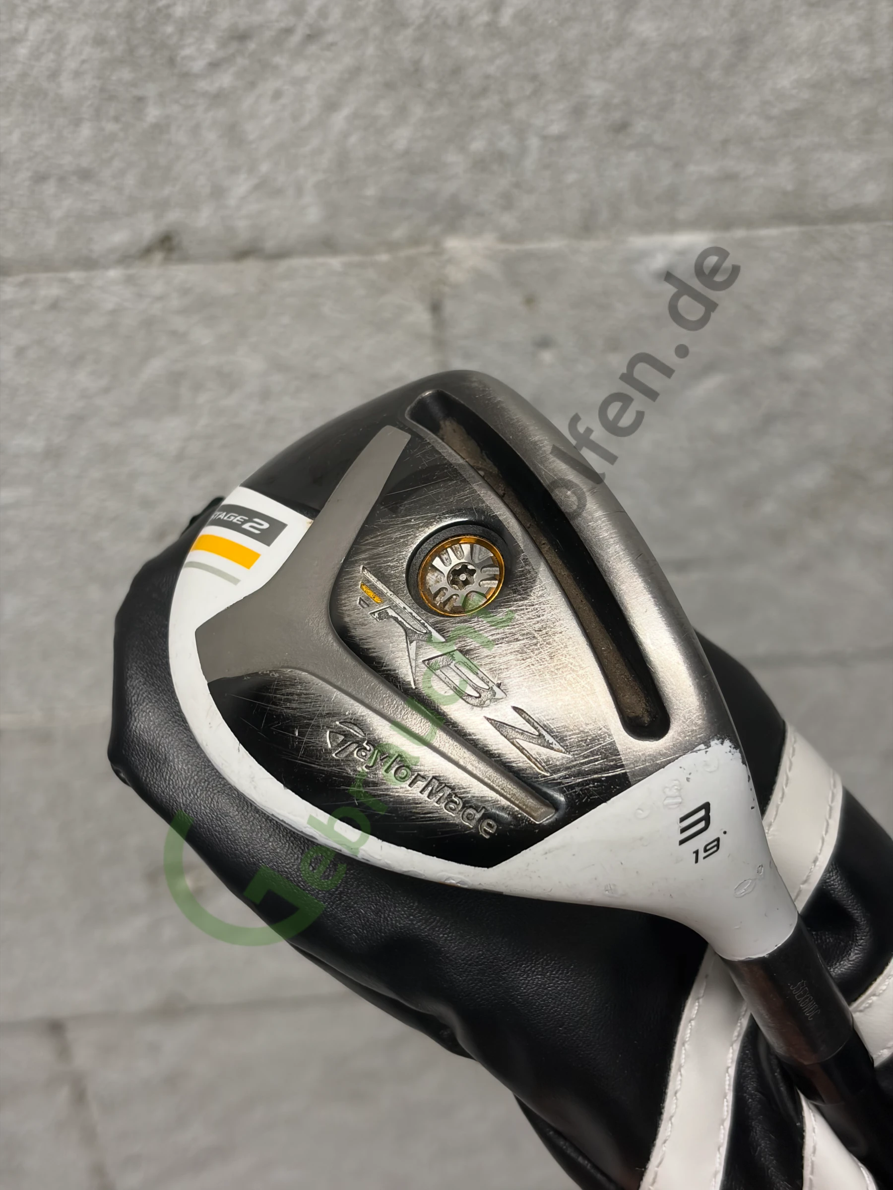 Gebrauchter Hybrid 3 von TaylorMade aus der RBZ Stage 2-Serie mit 19 Grad Loft und Graphitschaft in Stiff-Flex für Rechtshänder.