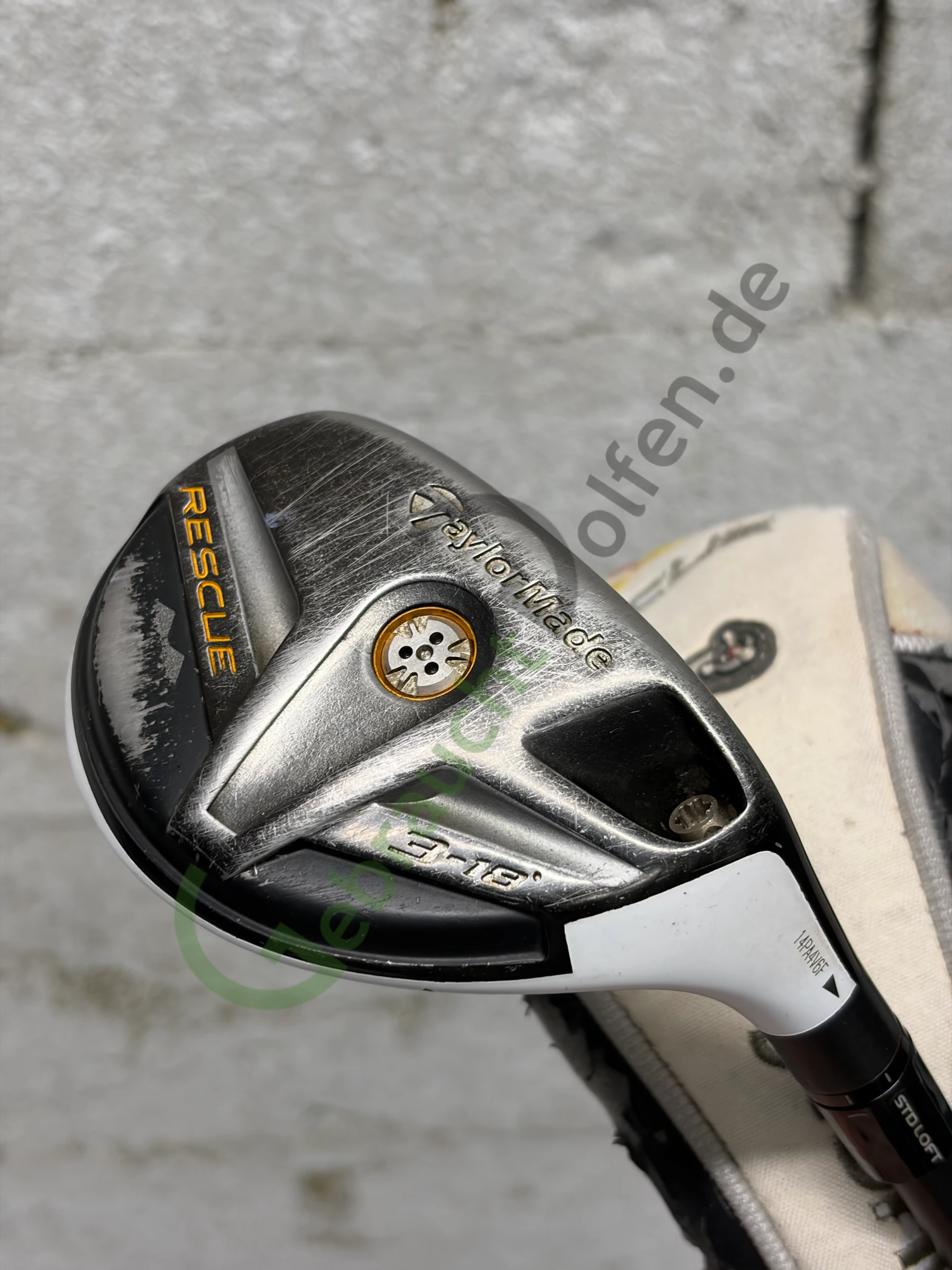 Gebrauchter Hybrid 3 von TaylorMade aus der Rescue 2011-Serie mit verstellbaren 18 Grad Loft und Graphitschaft in Regular-Flex für Rechtshänder.