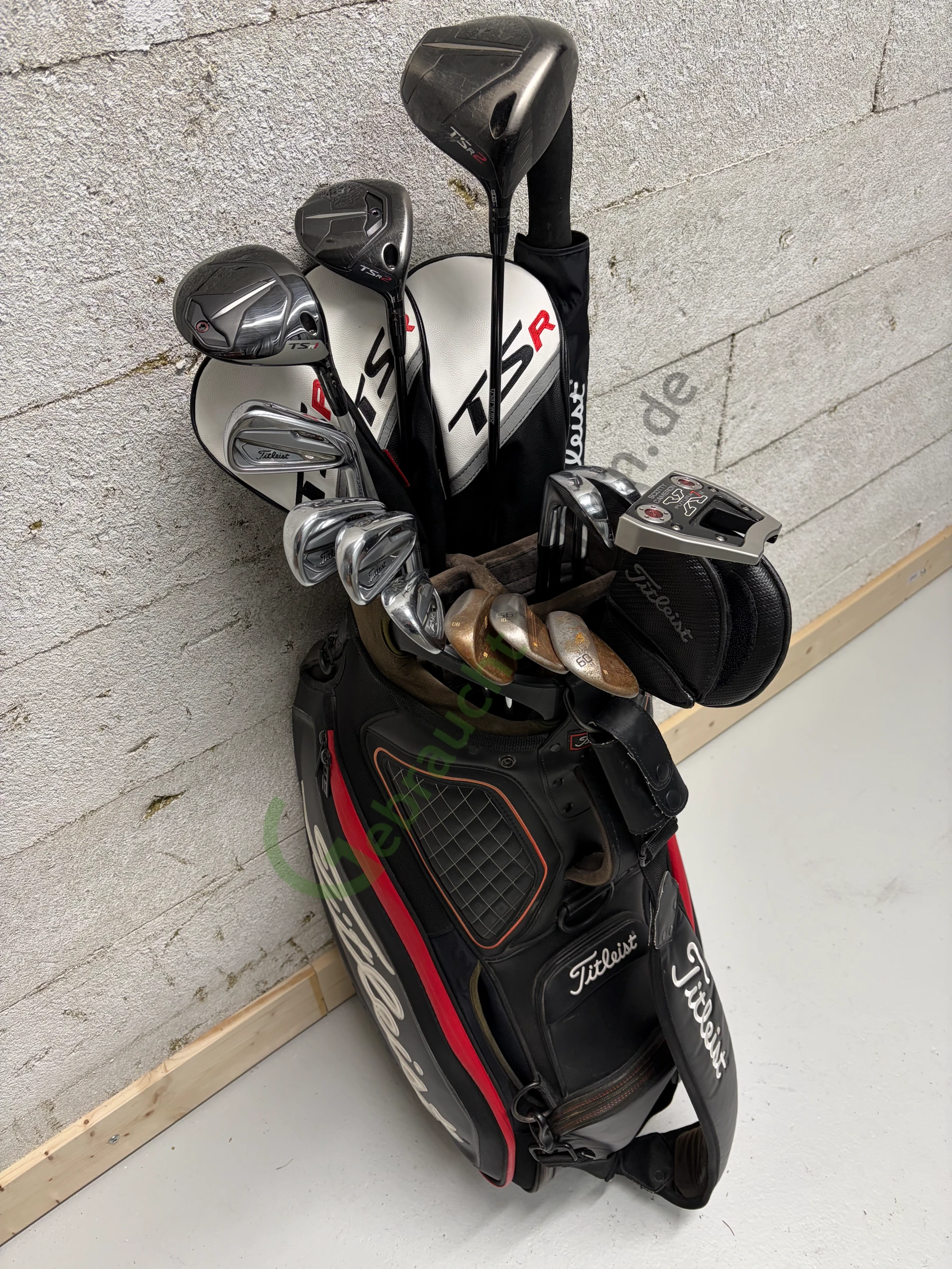 Angeboten wird ein komplettes Titleist Set aus der TSR2/1-Serie für die Hölzer, T100 S für die Eisen 4 bis PW und SM9 für die Wedges. Komplettiert wird das Set mit dem Scotty Cameron Futura X7M in 33 Inch Länge und einem Titleist Staff Bag mit 6 Fächern und 7 Seitenfächern. Das Set kommt mit einem Titleist Regenschirm.