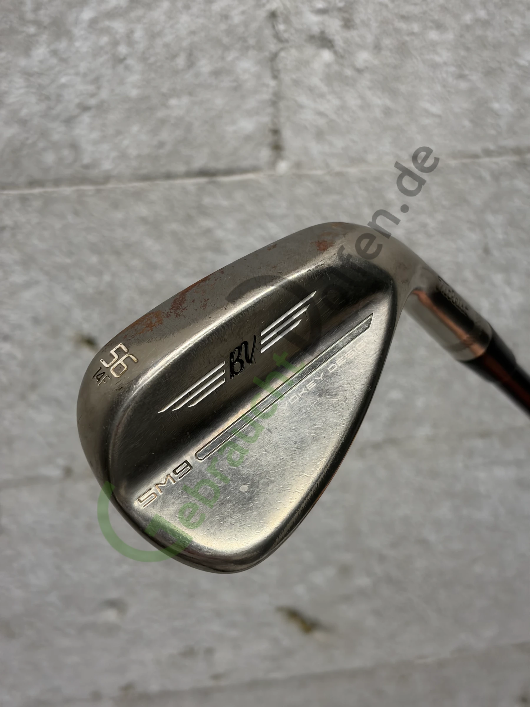 Gebrauchter Sand Wedge von Titleist aus der SM9-Serie mit 56 Grad Loft und 14 Grad Bounce sowie Graphitschaft in Regular-Flex für Rechtshänder.